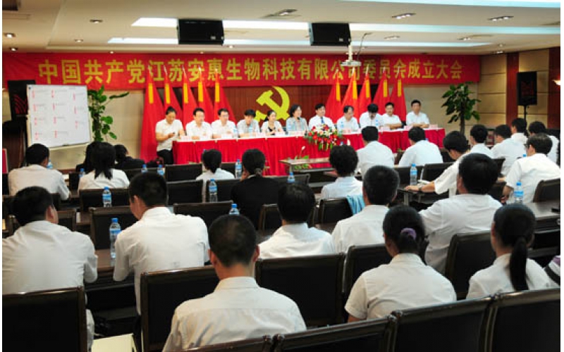 2009年6月30日,中國共產黨江蘇安惠生物科技有限公司委員會成立。開發區黨工委副書記、管委會副主任嚴憲,“兩新”工委書記、組織部副部長邵平,紀工委副書記王艷青等出席成立大會。