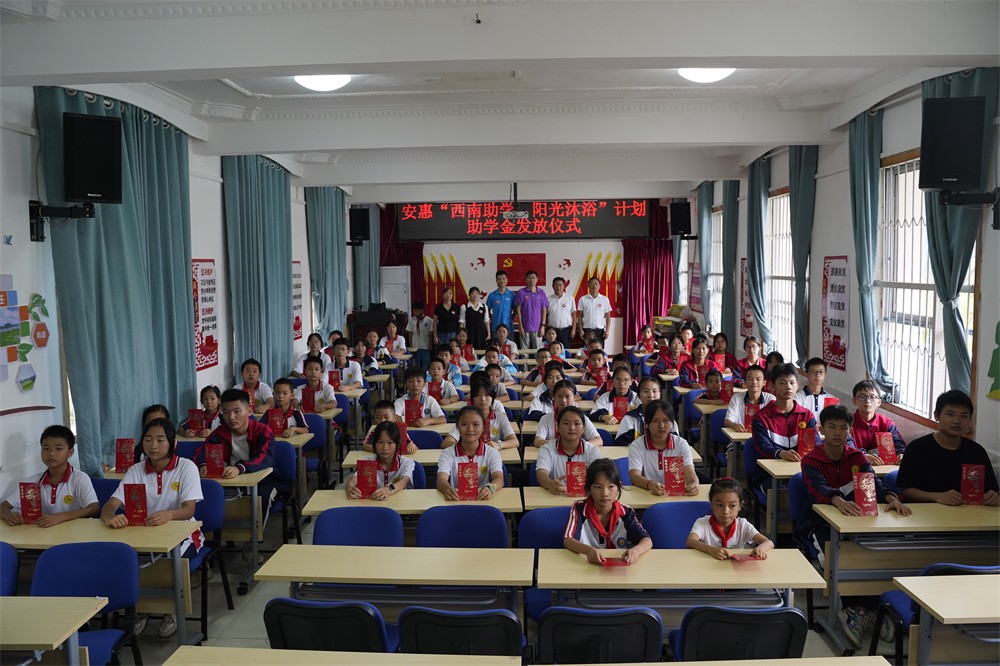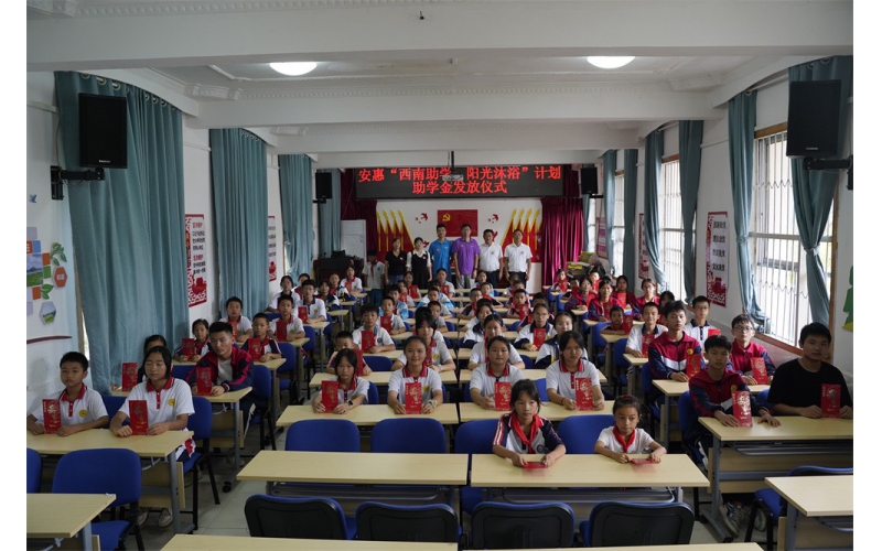 活動上,安惠公司為麻尾小學(xué)、獨山四中捐贈洗浴物資,為麻尾小學(xué)校舍捐贈1臺空氣能熱水器。儀式后, 一場簡樸溫馨的助學(xué)金發(fā)放儀式在麻尾小學(xué)多功能廳開啟,安惠江海志愿者將助學(xué)金分發(fā)到受助學(xué)生手中,受資助的學(xué)生們紛紛致謝,表示將珍惜機會,努力學(xué)習(xí),保持奮發(fā)向上的精神,以優(yōu)異的成績感恩父母、造福家鄉(xiāng)、回報社會。