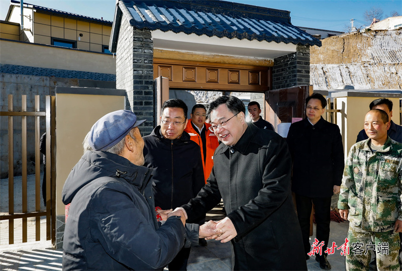 11月18日,省委書記、省人大常委會主任胡昌升在蘭州市榆中縣調(diào)研災(zāi)后恢復(fù)重建工作,看望慰問受災(zāi)群眾、一線建設(shè)者和基層黨員干部。(記者孟捷)