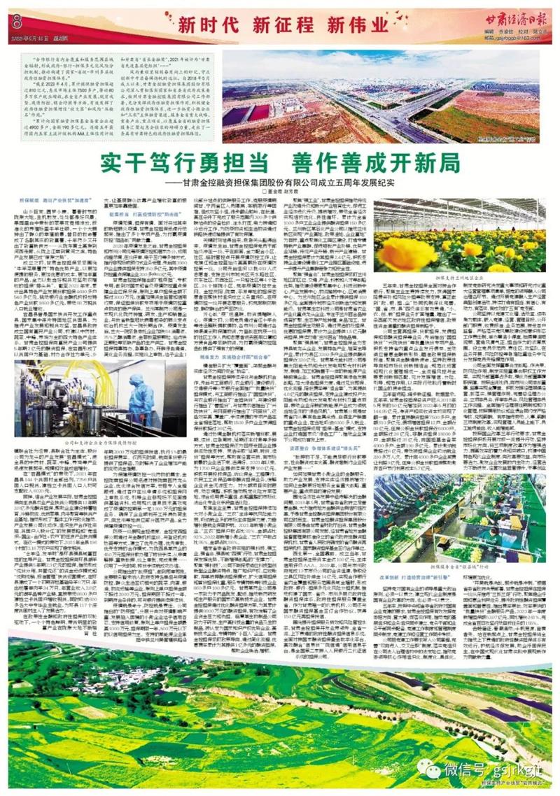 風雨兼程里銘刻奮發向上的印記,守正創新中開啟奮楫揚帆的遠征。自2018年5月成立以來,甘肅金控融資擔保集團股份有限公司深入貫徹落實國家和省委省政府政策要求,按照甘肅金融控股集團有限公司工作部署,充分發揮政府性融資擔保作用,積極健全政府性融資擔保體系,進一步拓寬小微企業和“三農”主體融資渠道,服務全省重大戰略、重要產業、重點項目,以覆蓋全省的融資擔保服務匯聚起惠企強農的磅礴力量,走出了一條具有甘肅特色的政府性融資擔保路徑。